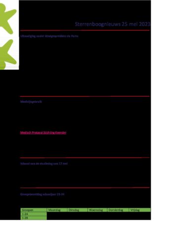 Jaarplan de Sterrenboog